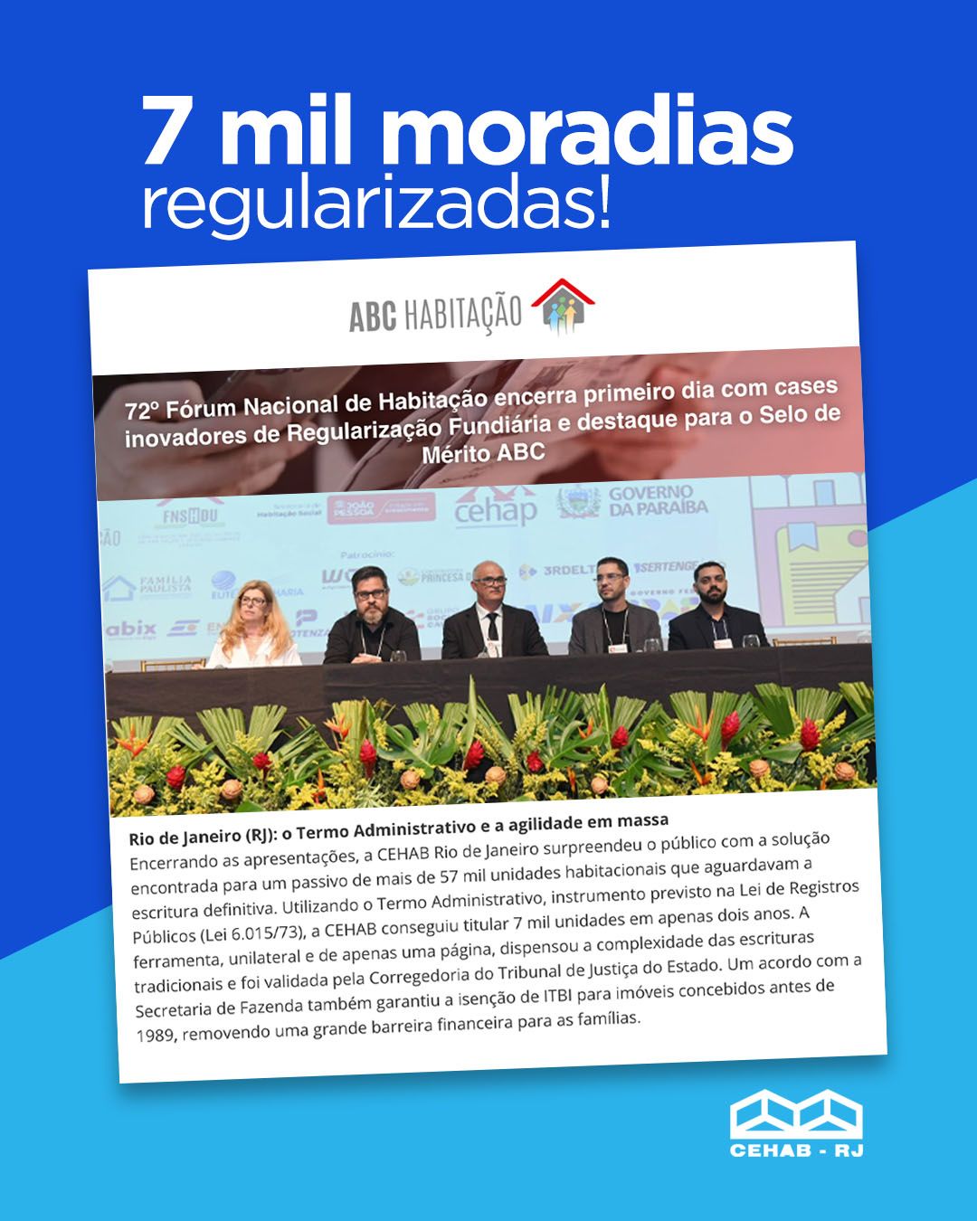 Com protagonismo e inovação, a CEHAB-RJ reforça seu compromisso em promover moradia digna, infraestrutura de qualidade e soluções jurídicas eficientes para as famílias do Estado do Rio de Janeiro.