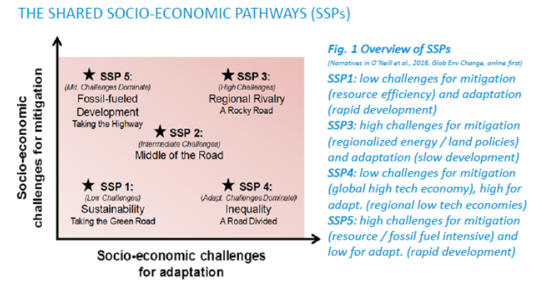 Fonte: Riahi et al., The SSPs: An Overview, poster presented by Joeri Rogelj, site UNFCCC, 2016