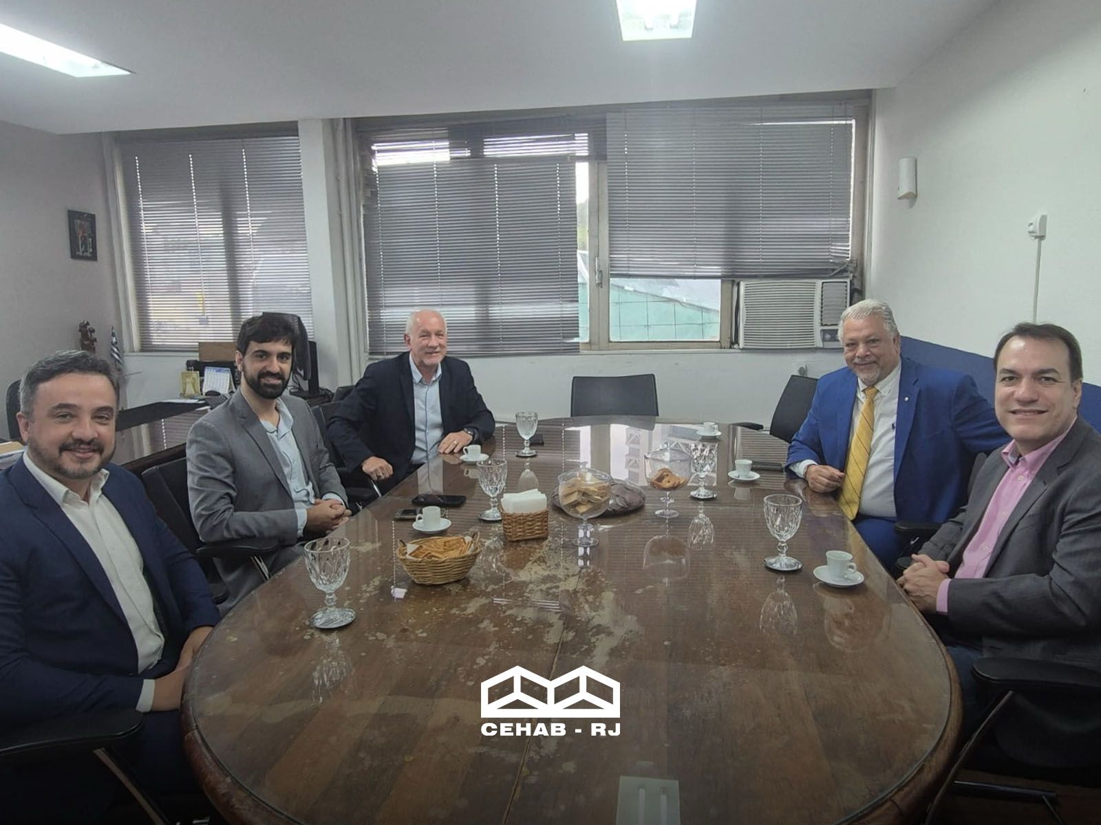 Antes do início do congresso, a CEHAB-RJ recebeu em sua sede o presidente da COHAB-MG, Márcio Bernardino, acompanhado do diretor de Engenharia, Gustavo Nogueira, e do diretor de Habitação, José Bonifácio. O encontro teve como objetivo fortalecer o intercâmbio de experiências entre as companhias estaduais e promover o diálogo sobre práticas adotadas no enfrentamento dos desafios habitacionais em Minas Gerais e no Rio de Janeiro.