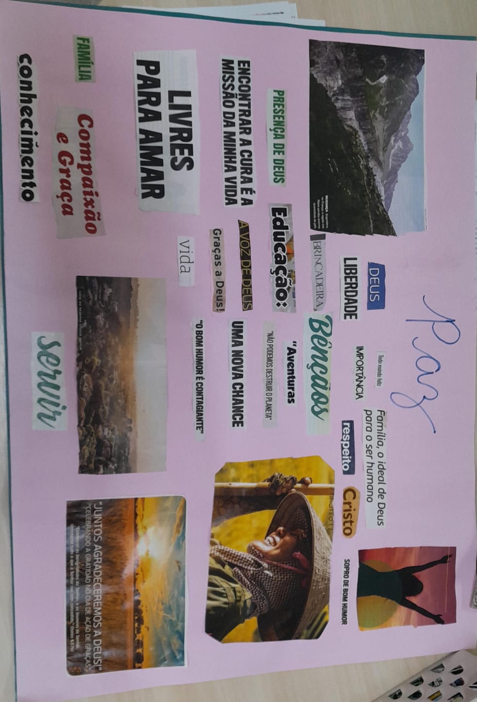 Os jovens também participaram de uma atividade de expressão artística, criando um cartaz com palavras e imagens representativas sobre paz e violência, pesquisadas em revistas. Para enriquecer a experiência, a professora Aparecida Martins colaborou com uma atividade lúdica, ensinando os jovens a jogar Mancala, enquanto contextualizava a importância da semeadura e da colheita na construção de uma sociedade mais pacífica.