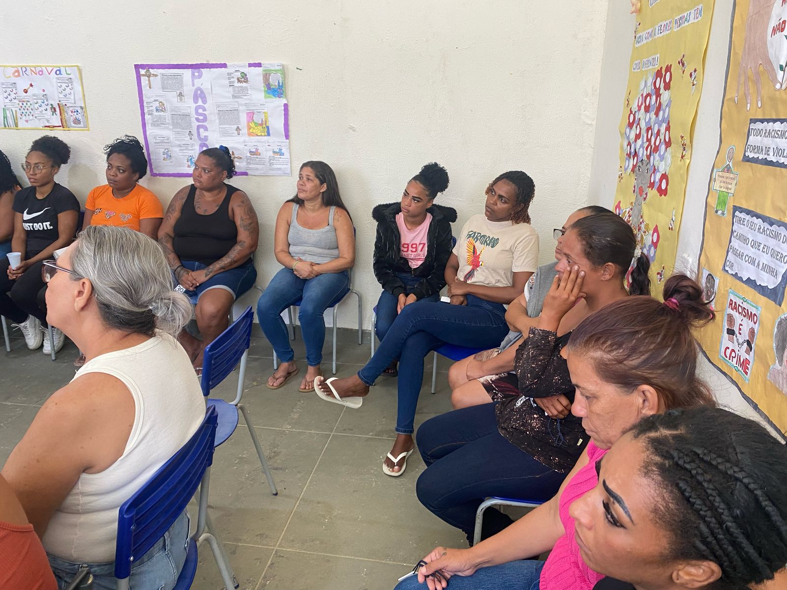 O encontro teve início com a apresentação da equipe técnica e uma conversa introdutória sobre o significado da internação provisória, esclarecendo dúvidas e oferecendo orientações. Enquanto isso, os adolescentes preparavam o espaço para o lanche, gesto que emocionou diversas mães ao verem seus filhos envolvidos com responsabilidade e cuidado na organização do ambiente.