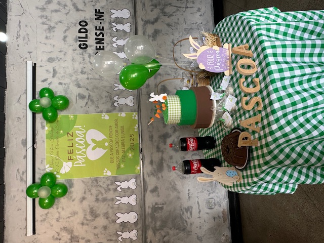 Dando continuidade às atividades, o Cense Nova Friburgo entregou potinhos e saquinhos com guloseimas para todos os socioeducandos e servidores. E no domingo de Páscoa, as famílias que visitaram a unidade receberam cartões com mensagens especiais da data, além de chocolates e mini chocolates para as crianças (filhos e irmãos), criando um clima de acolhimento e reflexão.
