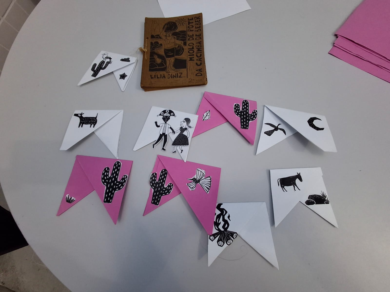 Durante a oficina, os jovens puderam conhecer os principais elementos do cordel, como os versos rimados e a linguagem acessível, além de aprender sobre a técnica da xilogravura, utilizada tradicionalmente para ilustrar os folhetos. A atividade também contou com a parte prática: os socioeducandos confeccionaram bandeirinhas temáticas, que serão utilizadas na decoração da tradicional Festa Junina da unidade.