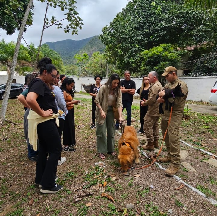 Pela manhã, ocorreu uma reunião de trabalho para discutir os desafios e as especificidades da atuação psicológica no contexto socioeducativo. Já no período da tarde, as participantes acompanharam uma demonstração da Divisão de Ações com Cães (DAC), que também apresentou a Cinoterapia, uma modalidade de terapia assistida por cães, destacando os benefícios da prática para o desenvolvimento emocional e social. O momento foi marcado pela curiosidade e envolvimento do grupo, que pôde conhecer de perto o trabalho realizado pela equipe responsável pela iniciativa.