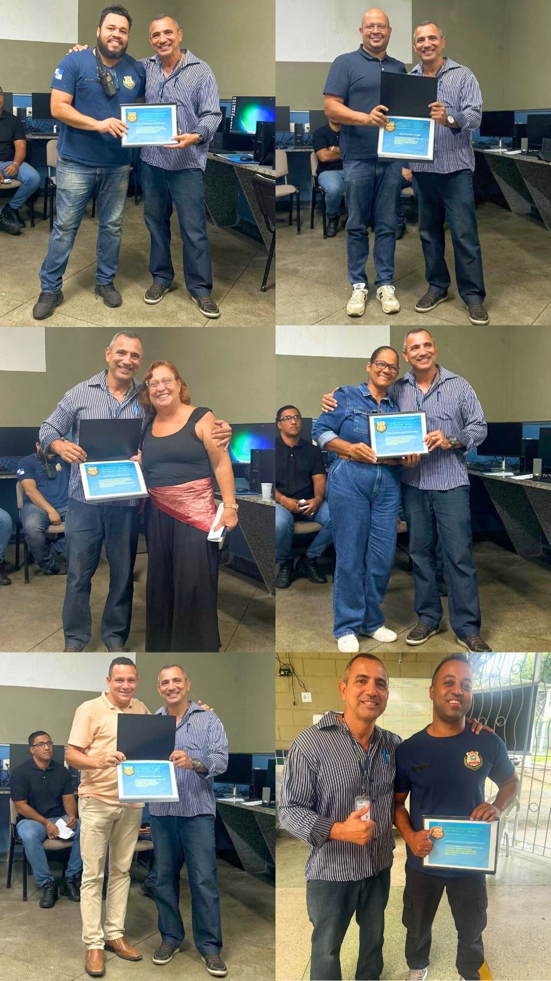 Foram homenageados os servidores Ivane Ramos e Anderson Victor Magalhães, do Setor de Recursos Humanos; Helaine Maria Lopes, assistente social, e Anderson Barreto, pedagogo, integrantes da Equipe Técnica; além dos Agentes de Segurança Socioeducativa Alexandre Henrique, Mário César Mesquita e Tiago Macieira.