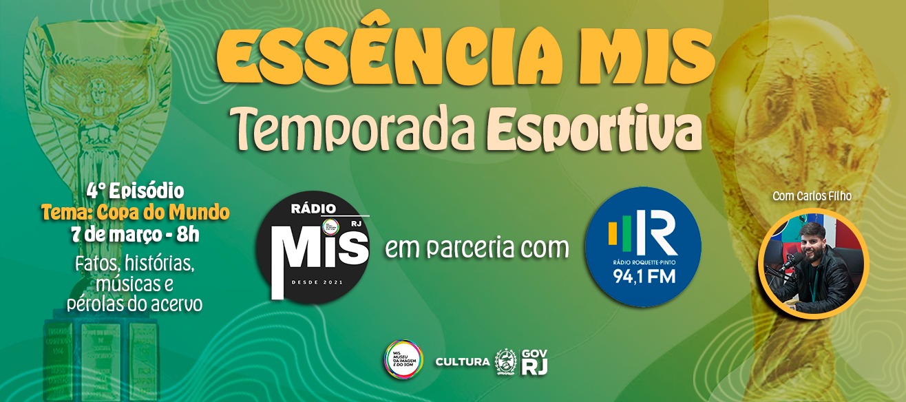 A Fundação Museu da Imagem e do Som do Rio de Janeiro em parceria com a Rádio Roquette-Pinto, apresentam a nova temporada da série “Essência MIS", a Temporada Esportiva, transmitida semanalmente, aos sábados, das 8h às 9h da manhã.