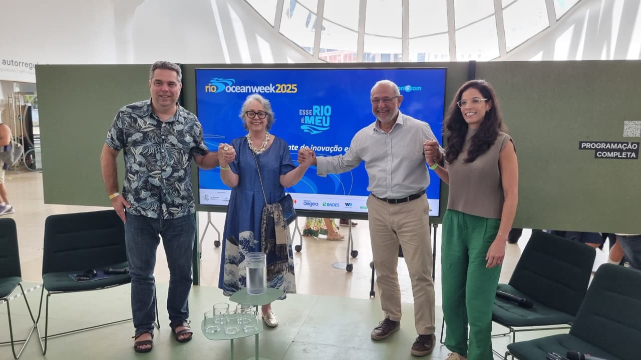 Neste ano, o projeto “Esse Rio é Meu” marcou presença na Rio Ocean Week, que acontece no Museu do Amanhã, entre os dias 22 e 26 de outubro de 2025. No Palco ESQUENTA, foi realizado o debate “As mãos que se unem pelos Rios – Esse Rio é Meu”, com a participação de importantes nomes ligados à preservação ambiental: Silvana Gontijo, fundadora do projeto; Tâmara Motta, gerente de responsabilidade social da Águas do Rio; e Alexander Turra, coordenador da Cátedra UNESCO para a Sustentabilidade do Oceano.