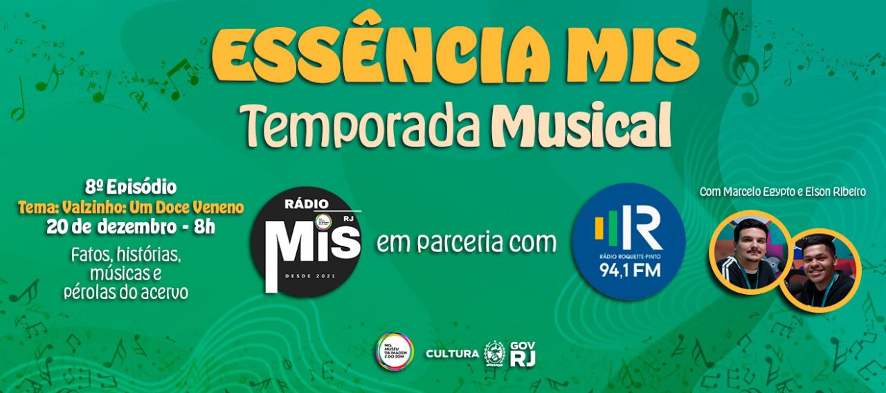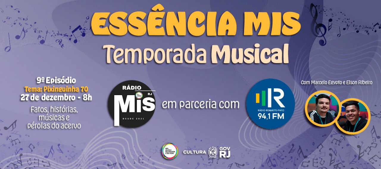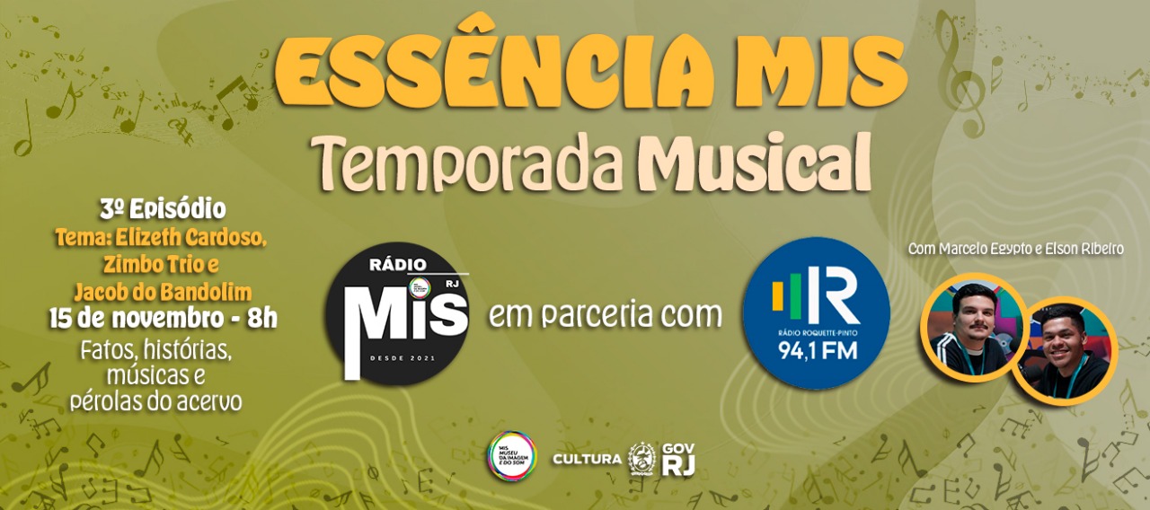 Fruto de um Acordo de Cooperação entre a Fundação Museu da Imagem e do Som do Rio de Janeiro e a Rádio Roquette-Pinto, a série “Essência MIS – Temporada Musical”, transmitida semanalmente, aos sábados, das 8h às 9h da manhã. Veiculada pela Rádio Roquette-Pinto e pela Rádio MIS RJ. O programa marca o início de uma nova fase do Essência MIS, que agora estreia em formato musical, revisitando os álbuns produzidos pelo Selo MIS, um projeto pioneiro que preserva a memória sonora do Brasil e eterniza grandes nomes da nossa música popular.
