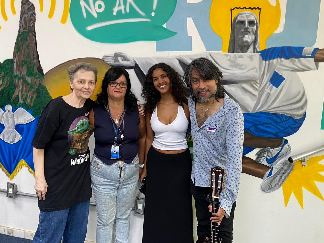 Nas fotos: Paula Ramagem (produtora), Ermelinda Rita (apresentadora), Clariá (cantora) e Luiz Lopez (músico)