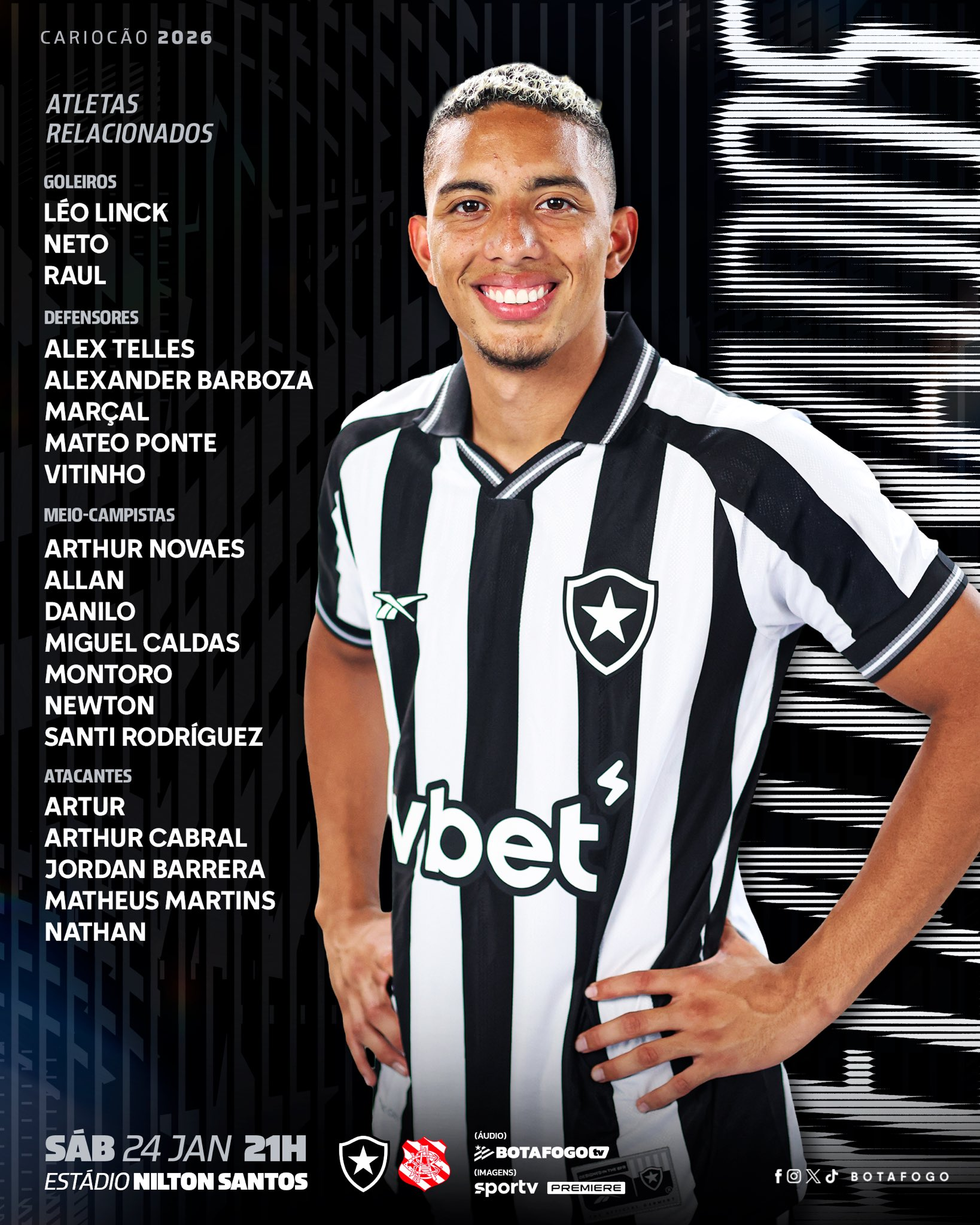 CONFIRA A LISTA DE RELACIONADOS PARA O JOGO ENTRE BOTAFOGO X BANGU