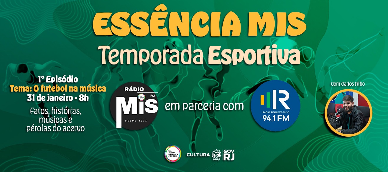 A Fundação Museu da Imagem e do Som do Rio de Janeiro em parceria com a Rádio Roquette-Pinto, apresentam a nova temporada da série “Essência MIS", a Temporada Esportiva, transmitida semanalmente, aos sábados, das 8h às 9h da manhã.