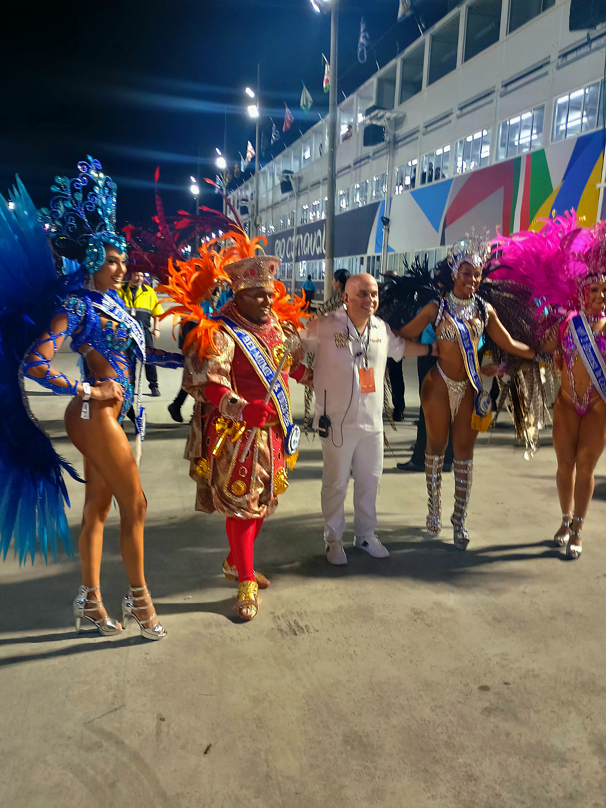 E o Presidente Hugo Júnior, da Liga - RJ, posa ao lado da Corte do Carnaval do Rio.