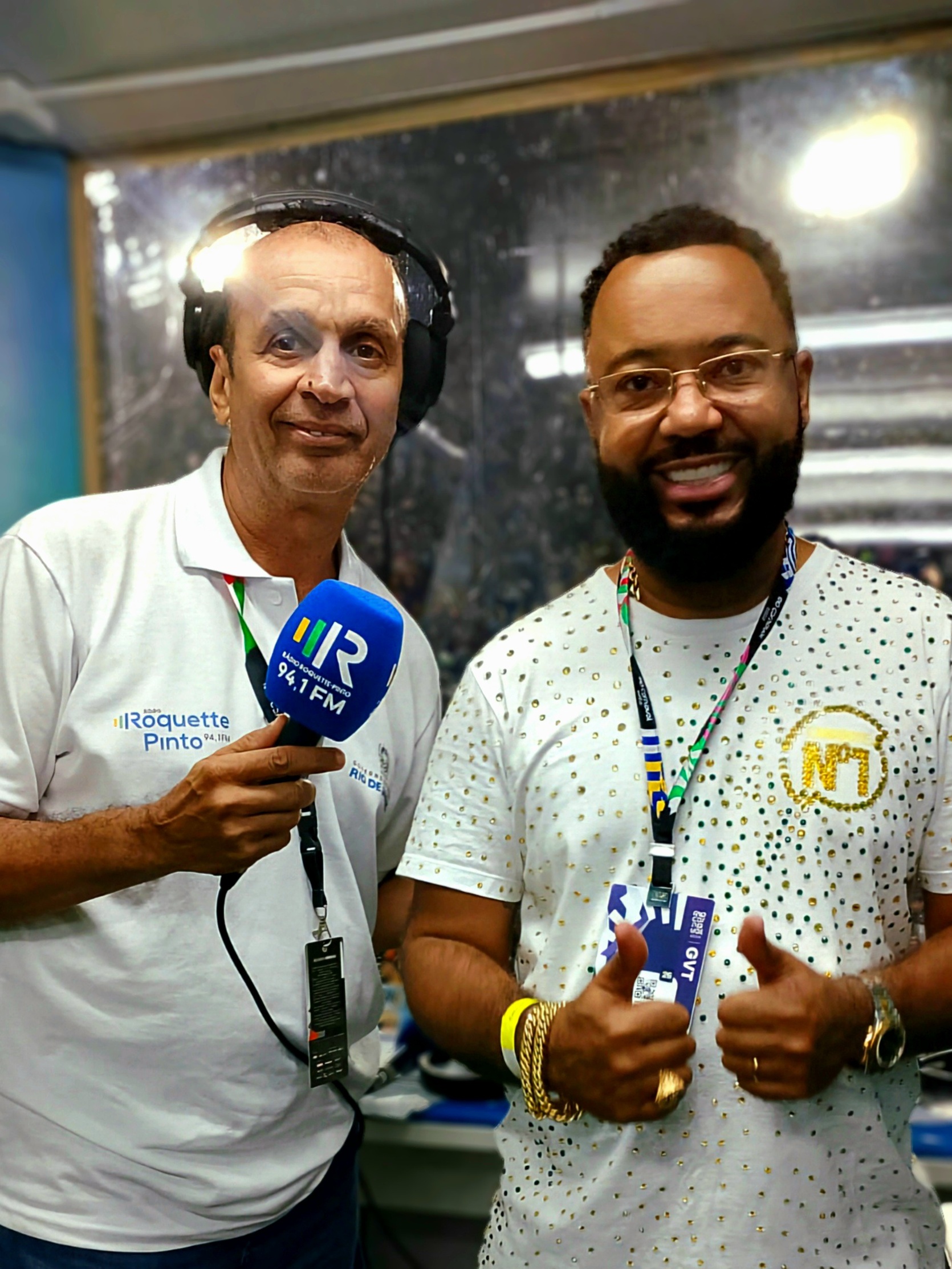 No decorrer da noite, o jornalista Miguel Ângelo entrevistou o cantor e compositor, Dudu Nobre, na cabine da Rádio Roquette-Pinto, na Marquês de Sapucaí.