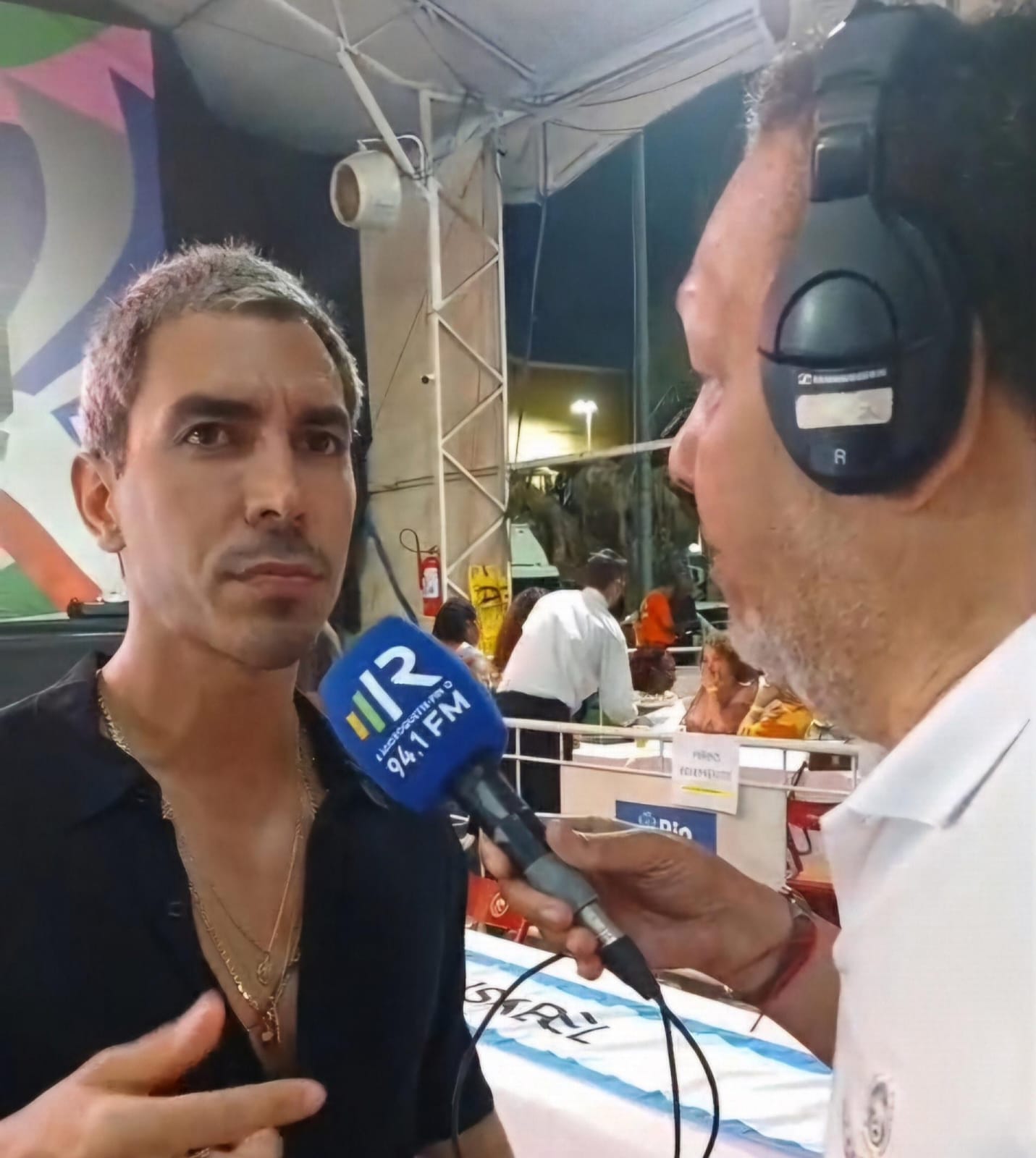 Na foto: Miro Ribeiro entrevista presidente da Liesa, Gabriel David.