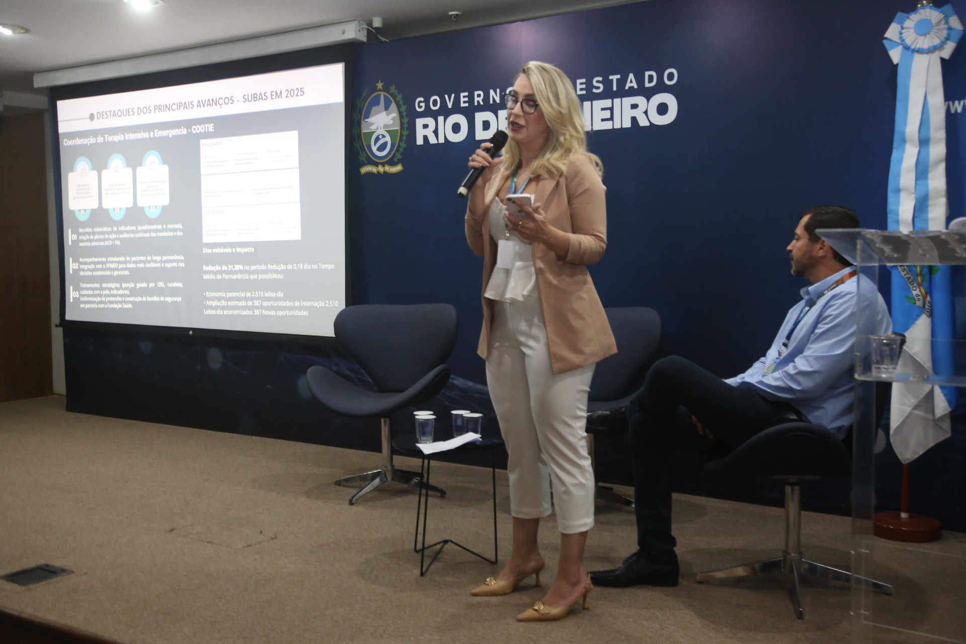 A coordenadora técnica de qualidade da SES-RJ, Meirilane Rosa, explicou o impacto do programa na transformação dos processos internos das unidades.