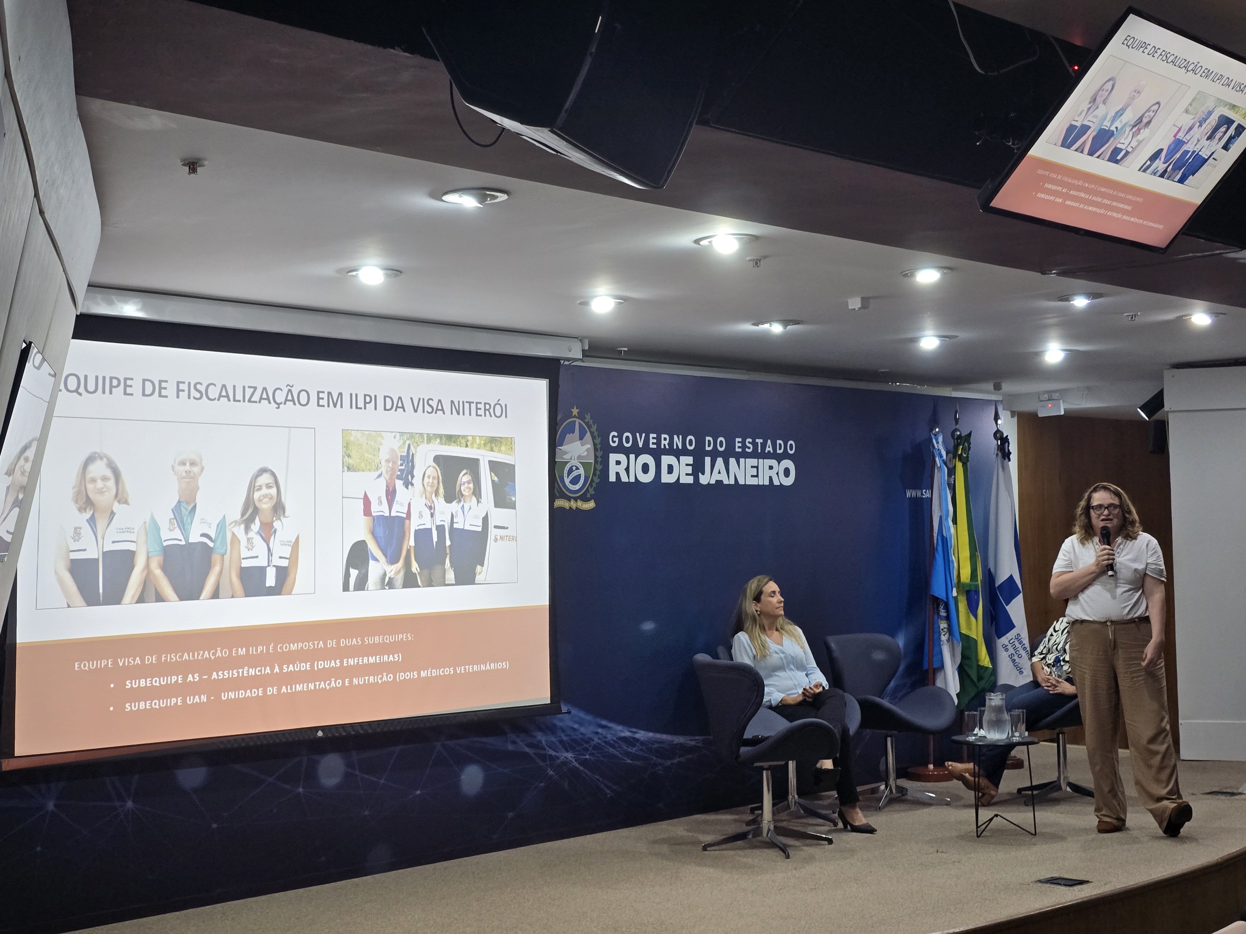 O município do Rio de Janeiro apresentou duas experiências: Ações do IVISA em Segurança do Paciente, com o técnico Angelo Saboia, e o Programa de Monitoramento da Qualidade dos Alimentos, apresentado por Luana Lopes Caldas, sob moderação das técnicas da Suvisa Amanda Vianna e Alessandra Torres. Em ambas, houve a contribuição da coordenadora da Visa municipal, Aline Pinheiro Borges.