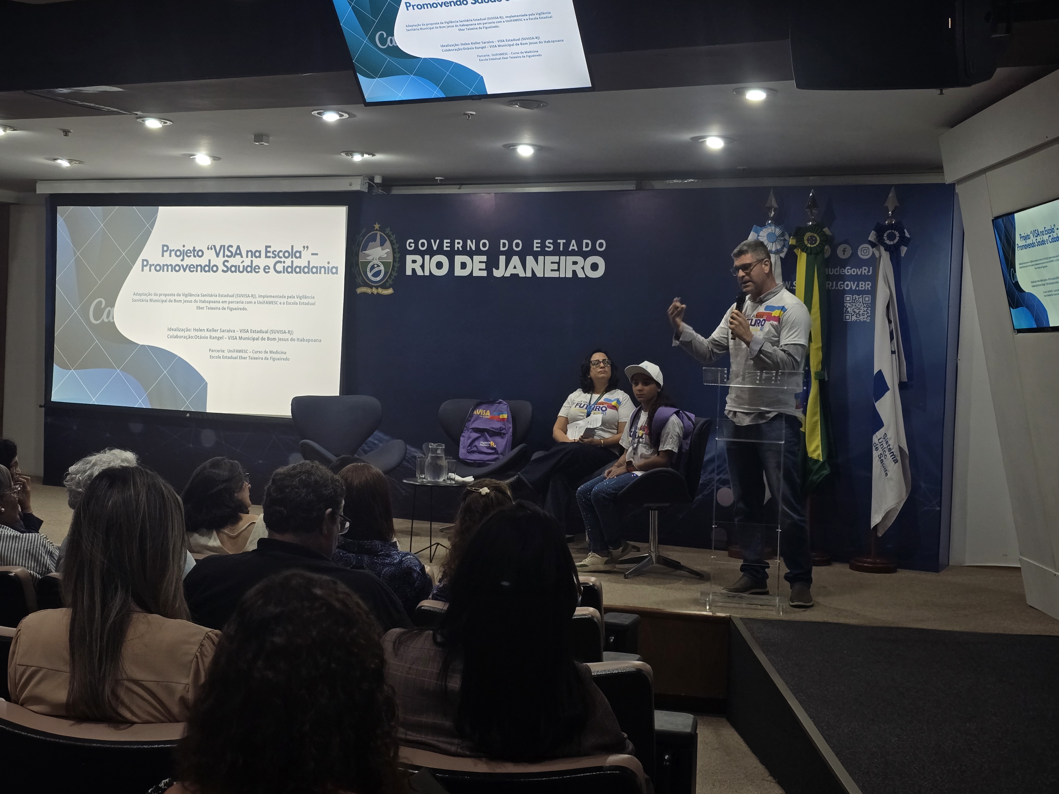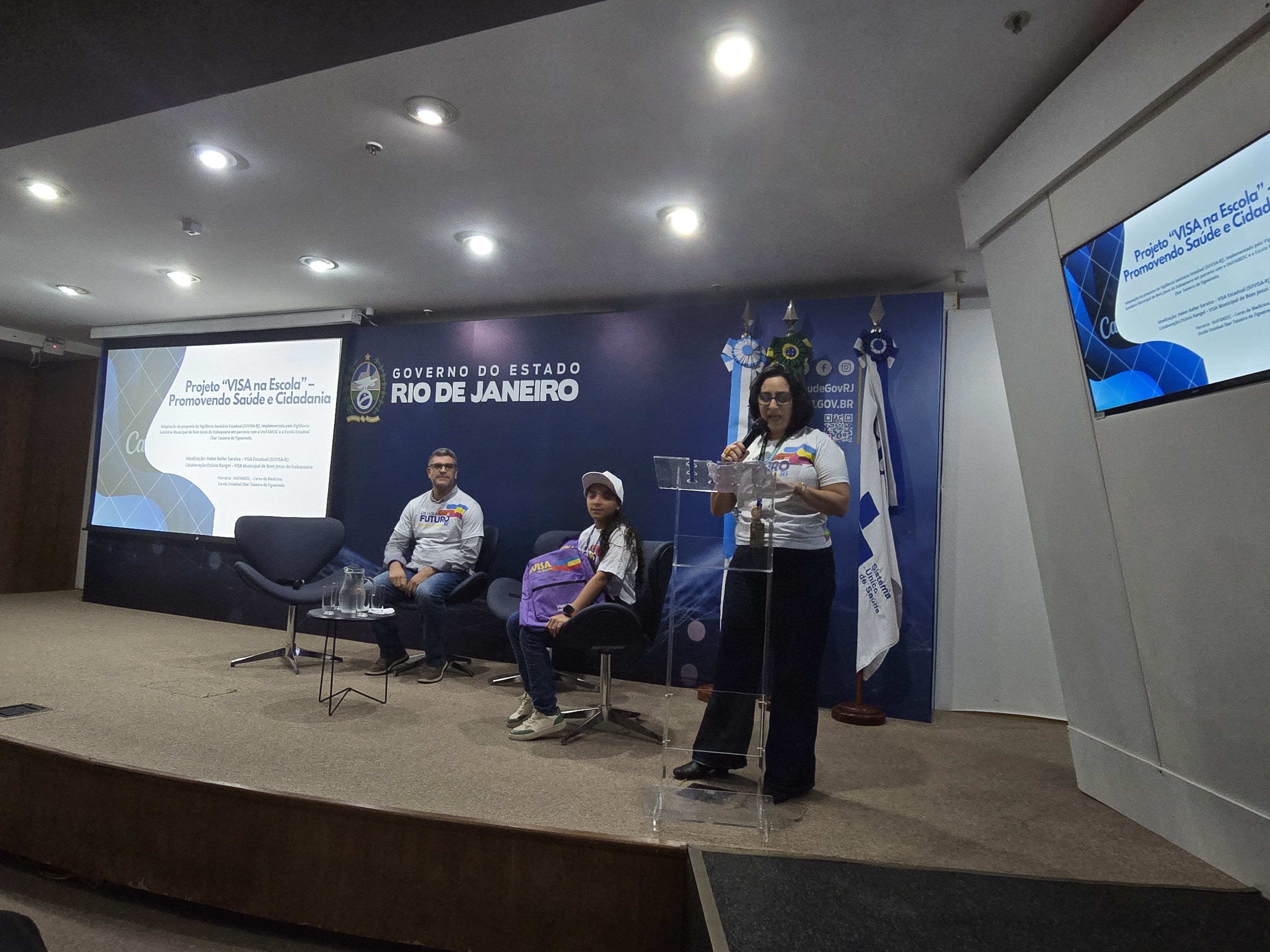 Bom Jesus do Itabapoana trouxe como destaque o projeto A VISA na Escola, com a apresentação do coordenador da Vigilância Sanitária municipal, Otávio Rangel, contando com as contribuições da técnica Bianca Marun. O momento foi marcado pela participação especial da menina Valentinna Santos, que serviu como modelo vestindo o uniforme do projeto A VISA na Escola.