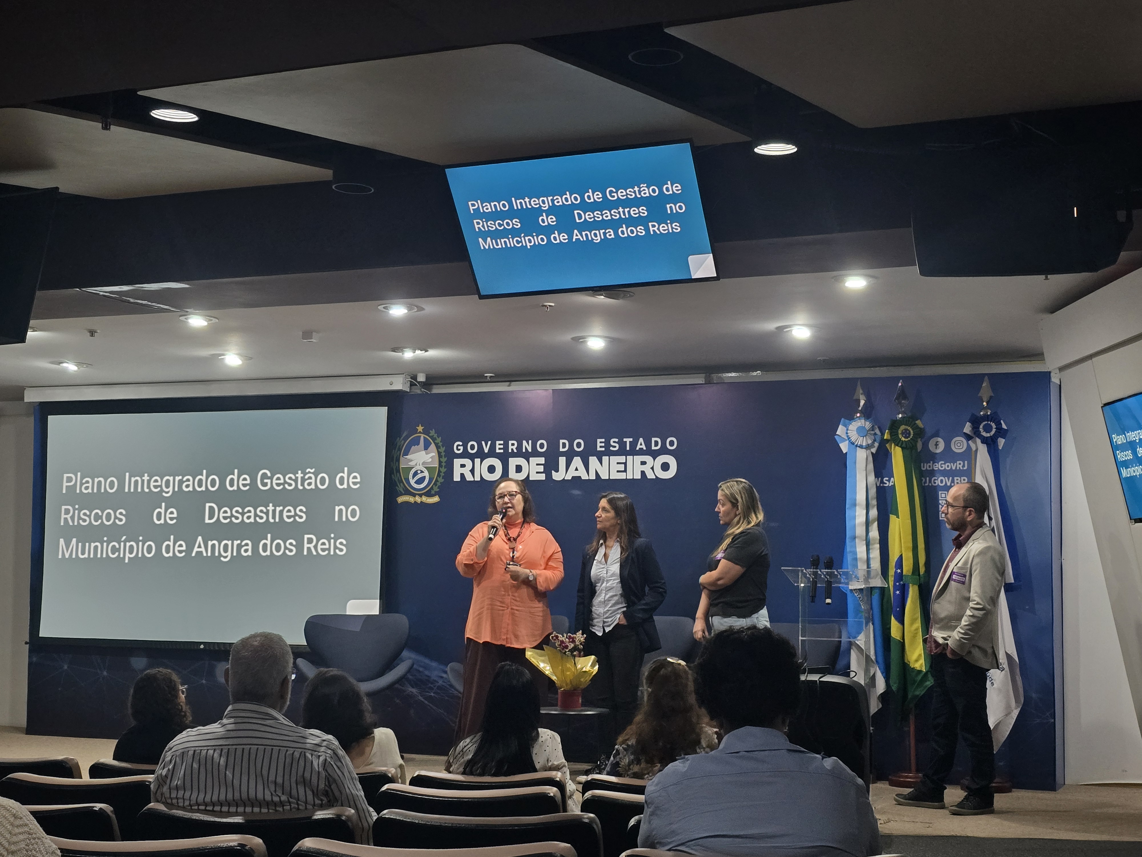 Por fim, Angra dos Reis apresentou o Plano Integrado de Gestão de Riscos de Desastres do Estado do RJ, com a coordenadora, Ana Paula Borba. Na mesma temática, sob moderação da técnica da Suvisa Dayse Carvalho, a coordenadora da Visa de Petrópolis, Denise Kronemberg, e o técnico Juliano Defavere compartilharam suas experiências.