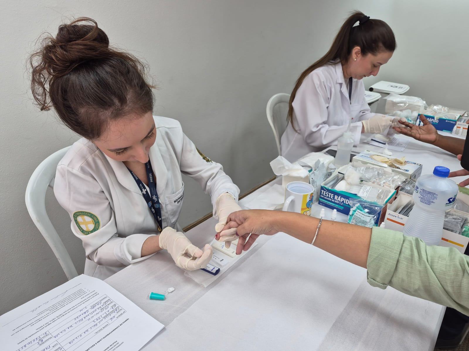 Suellen de Oliveira Chaves, que trabalha no Complexo Estadual de Regulação (CER), fez o teste rápido. Basta uma gota de sangue para a realização do exame, e o resultado é entregue em até 30 minutos.