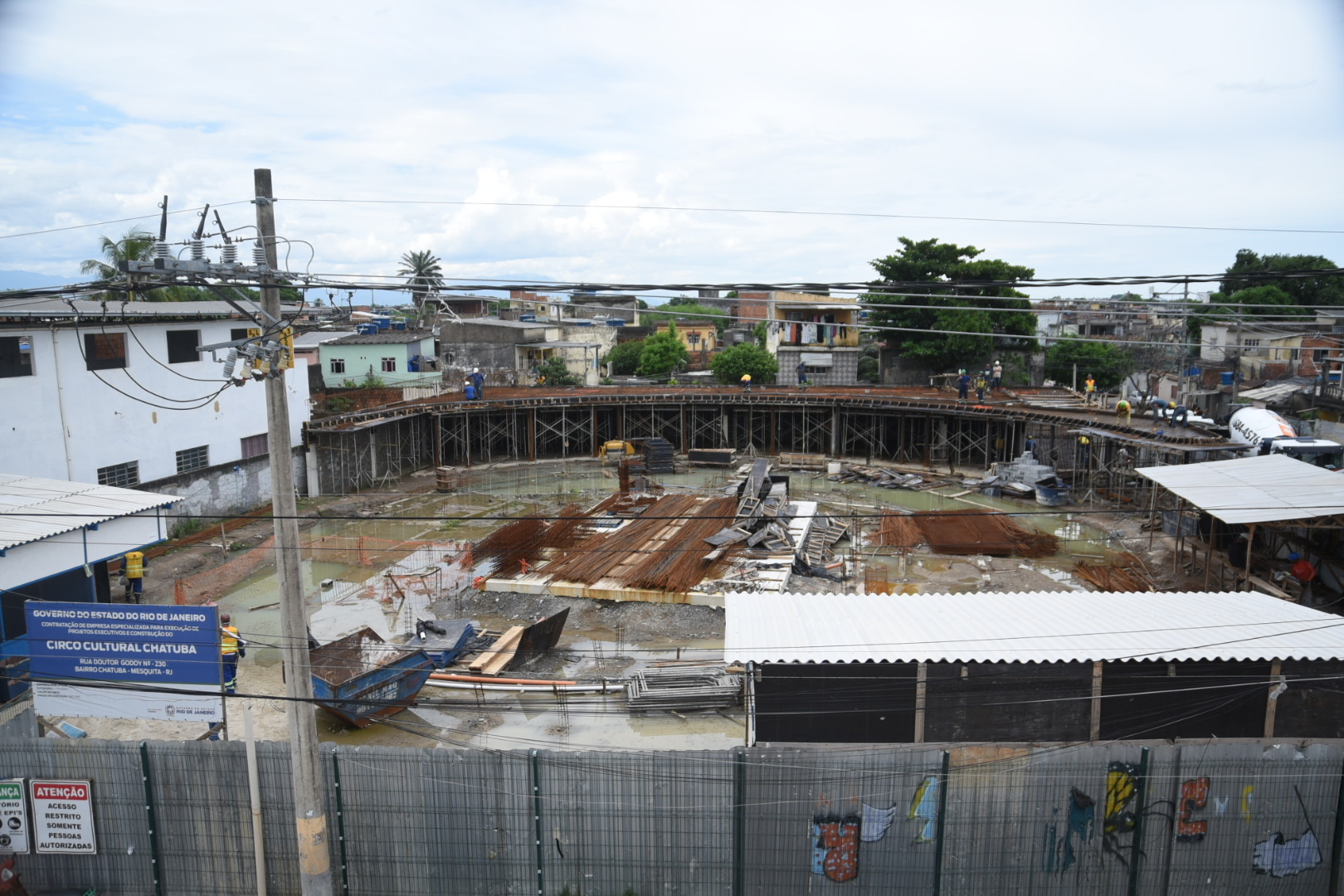 As obras de ampliação e modernização do Circo Cultural Chatuba, em Mesquita, na Baixada Fluminense, avançaram para uma nova etapa nesta quarta-feira (11), com a concretagem da laje do anexo do mezanino, localizado na parte posterior do complexo. Com área de 325 m², a estrutura dará suporte às futuras salas de aula, onde serão ministrados cursos de artes e outras atividades educativas.