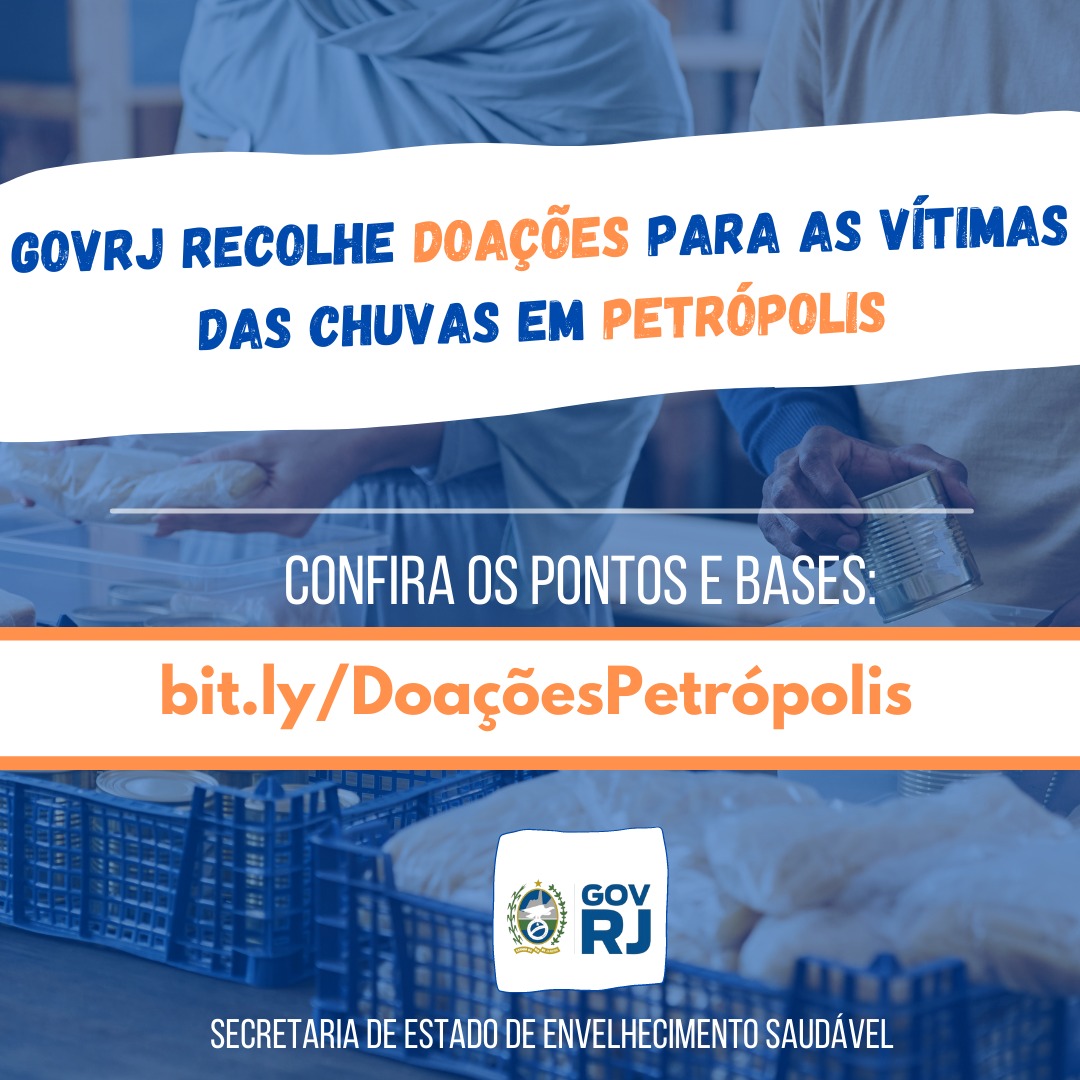 A Secretaria de Estado de Envelhecimento Saudável em ação conjunta com Governo do Estado do Rio de Janeiro se solidariza com a dor da perda das famílias de Petrópolis e recolhe doações em dezenas de endereços.
